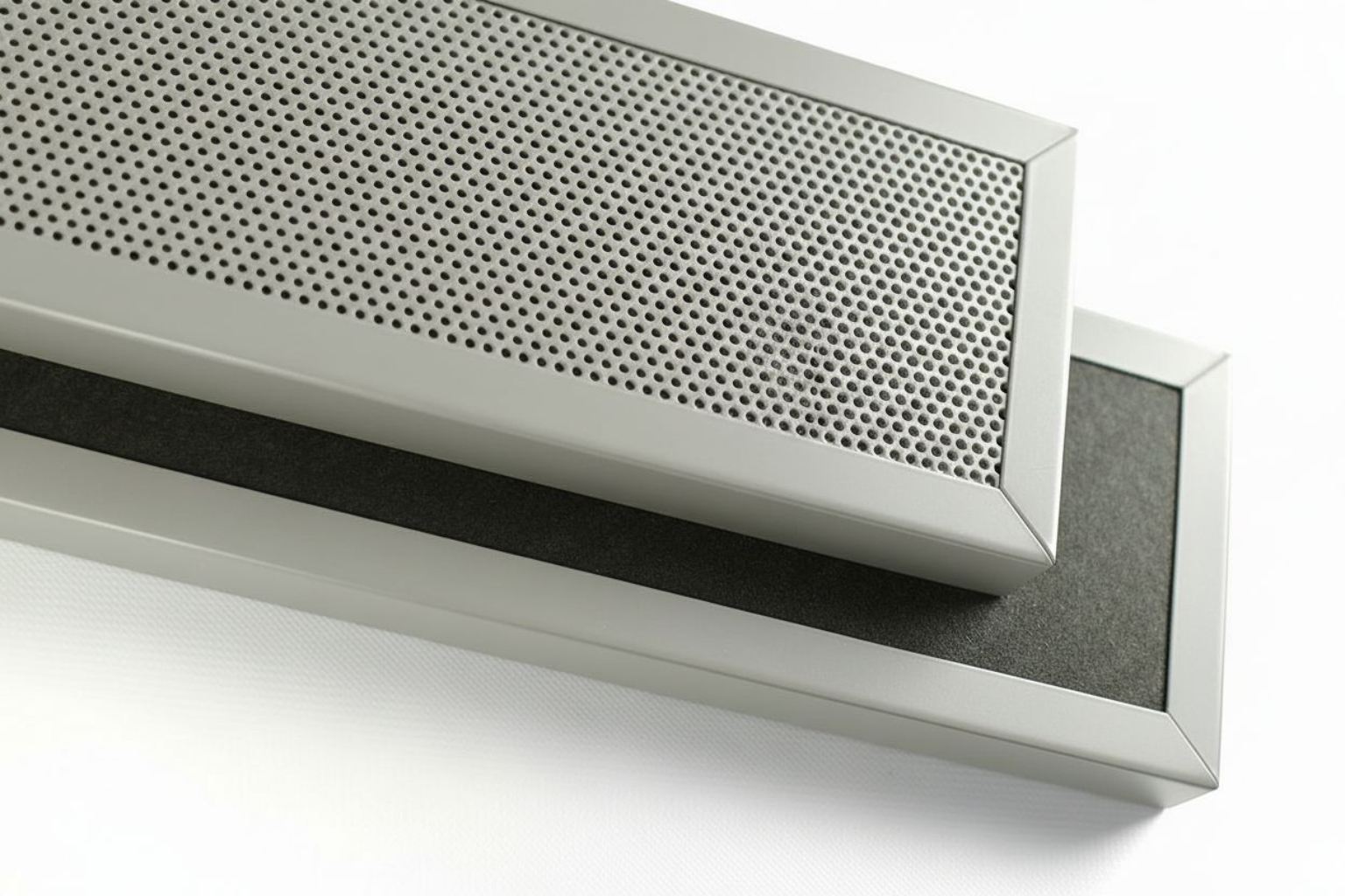 Внутреннее наполнение баффлов — акустическое стекловолокно повышенной плотности. Оно относится к классу негорючих материалов и обеспечивает максимальное поглощение звуковых волн.