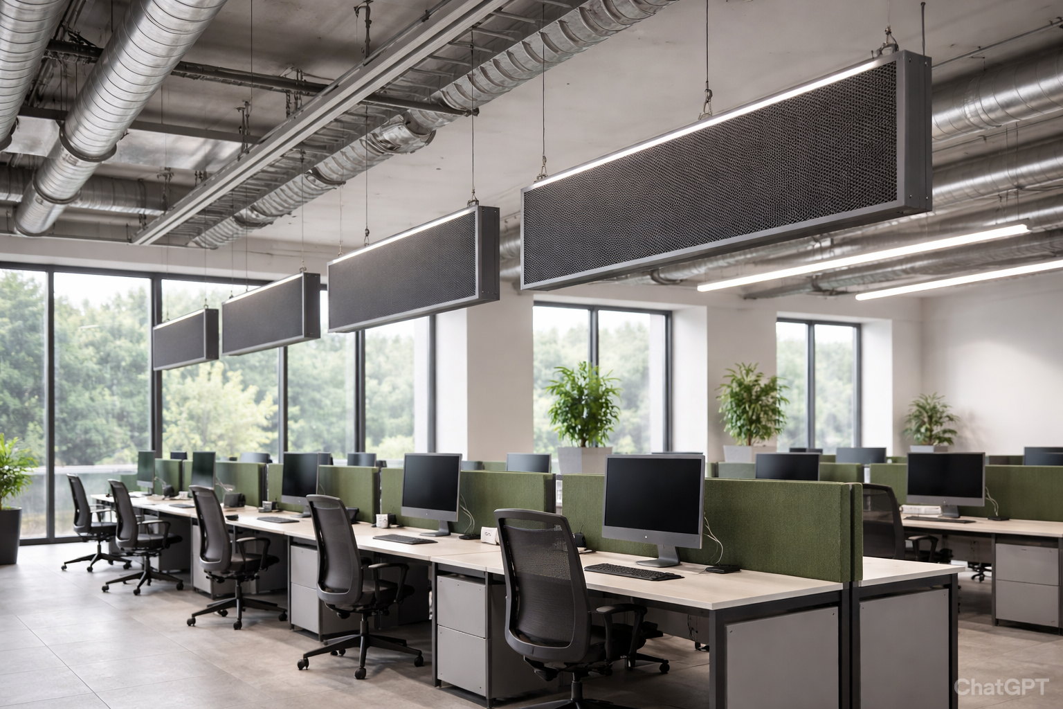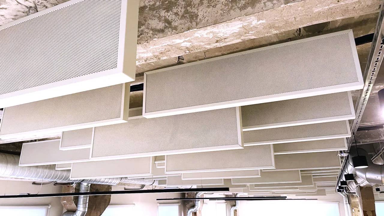 Данные изделия представляют собой эффективное решение для шумоподавления в помещениях любого назначения. Конструкция выполнена в виде объемных панелей, которые подвешиваются к потолку, позволяя эффективно бороться с гулом и эхом без потери полезной площади и высоты потолков.